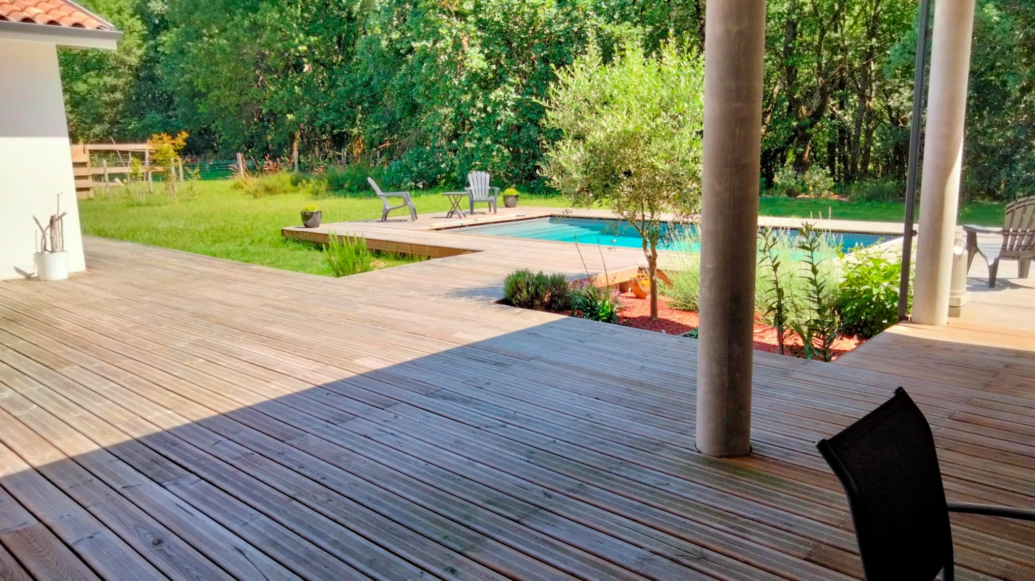 Réalisation de terrasses bois, terrasses carrelées sur plots.